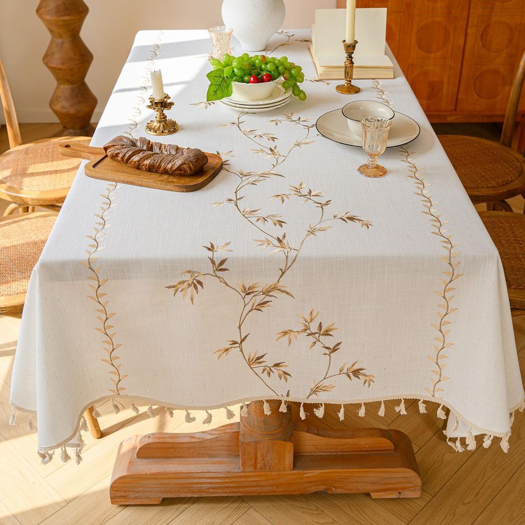 Embroidered Table Cloth Plant Flower Decorative Rectangular Table Cloth