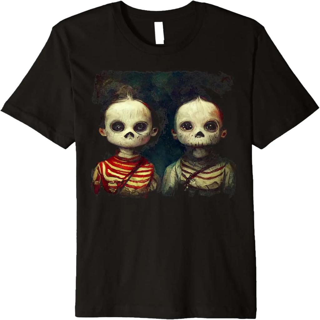 Creepy Skeleton Twins Shirt Aesthetic Horror Goth Halloween Premium T-Shirt