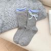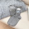 Fall/Winter Gray Warm Fleece Socks - Children's Color-Contrasting Butterfly Knot Mid-Calf Socks with Hollowed-Out Hemp Patterned Layers for Women