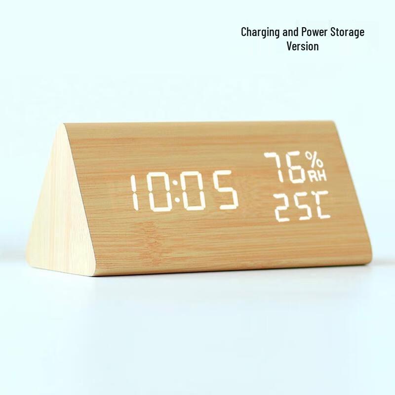 HANDUNYOU Wooden Triangular Alarm Clock with Temperature & Humidity
