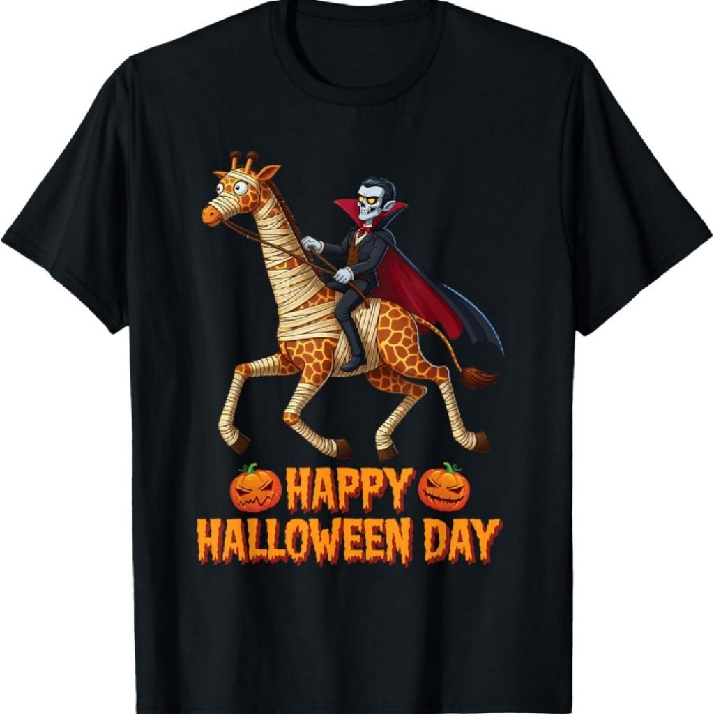 Dracula Riding a Mummy Giraffe Happy Halloween Animals Lover T-Shirt