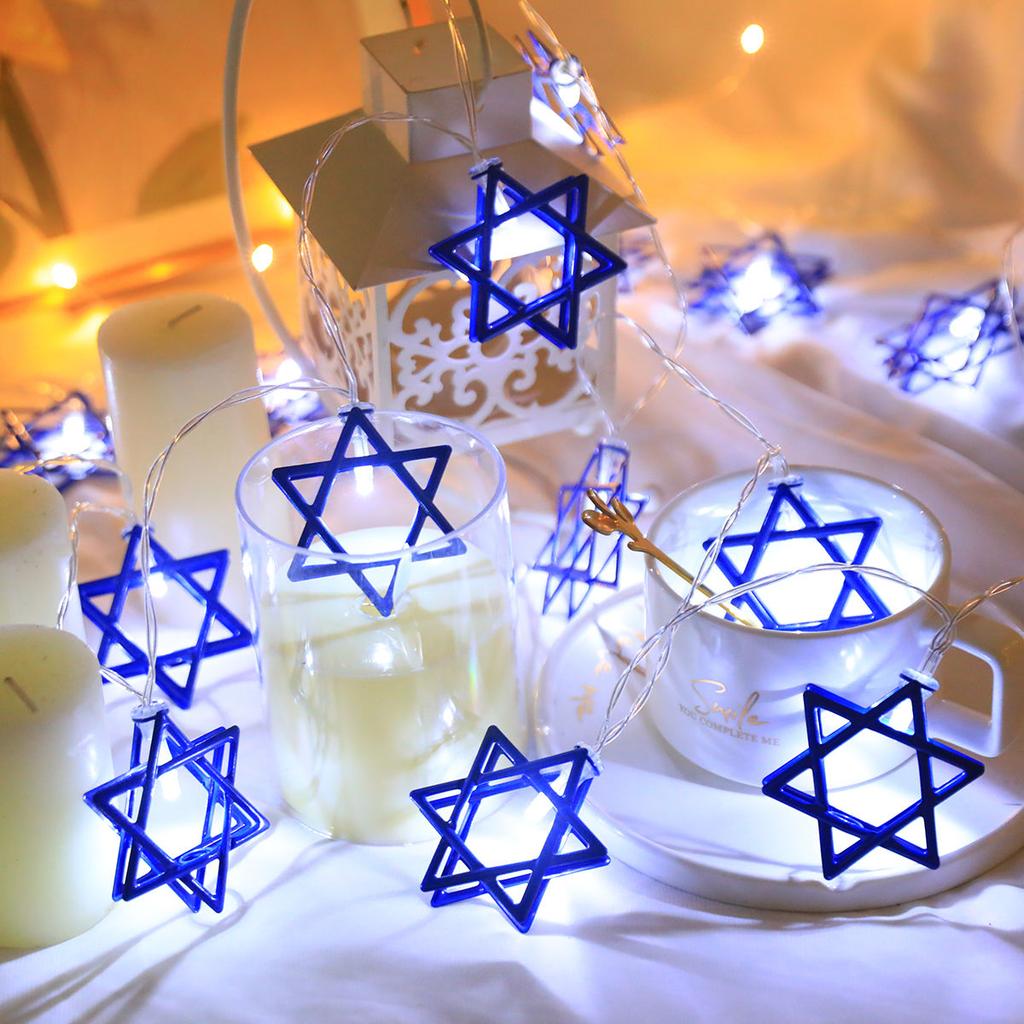 Hanukkah String Light: Our light string length is 1.6m, including 10 lights, Painted Gold iron art hexagonal star, waterproof PVC copper cords and vivid color, the hanukkah decoration fairy string lights can be used for a long time.