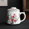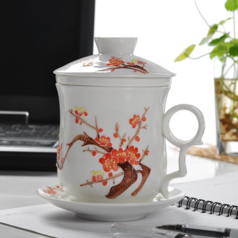 Hand-painted relief ceramic cups, creative zakka ceramic with lid and filter teacups, office cups