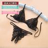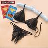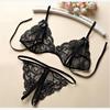 Open crotch free three-point two-piece set erotic lace underwear panties female sexy passion thong