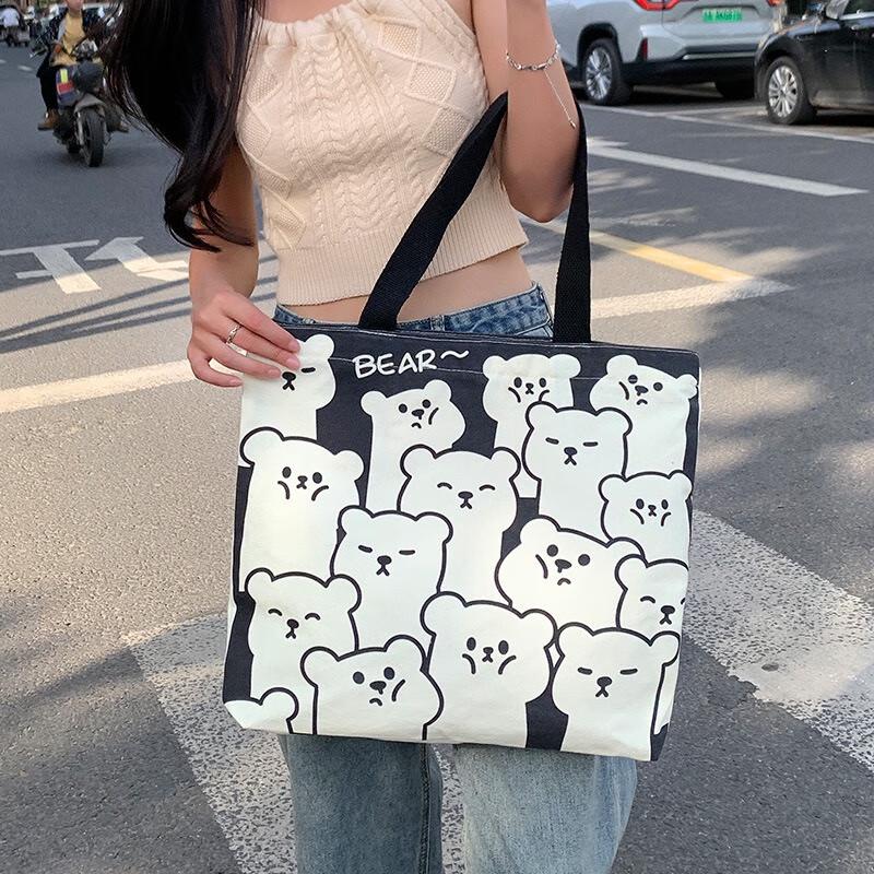 Cute Bear Women's Large Canvas Shoulder Handbag