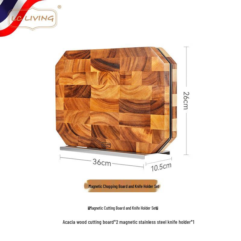 LC LIVING Acacia Wood Cutting Board & Knife Set with Magnetic Holder