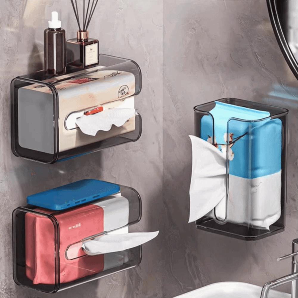 Punch-Free Suction Cup Tissue Box Removable Waterproof Paper Towel Storage Rack Refillable Clear Wet Wipes Container Kitchen