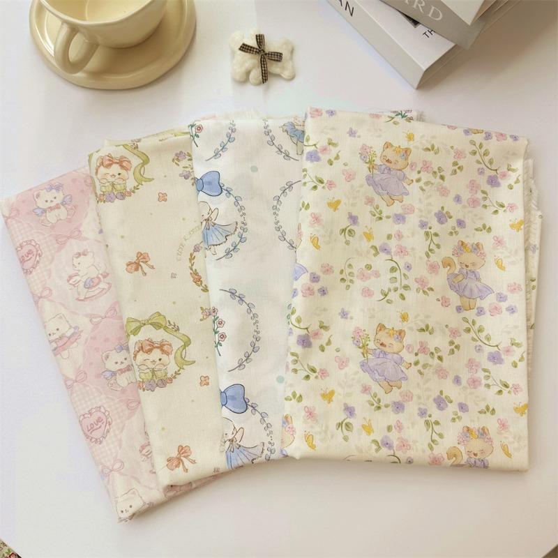 0.5m Pure Cotton Rabbit Printed Plain Weave Poplin Fabric for Sewing Dresses Tablecloths Decorative Cloth Handmade DIY Fabrics