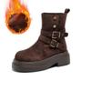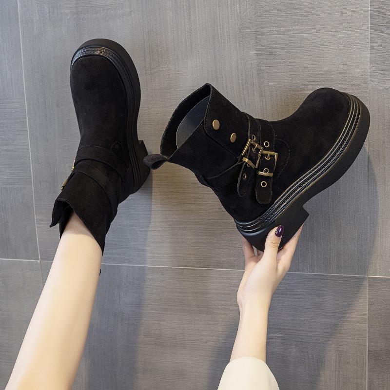 New autumn women's shoes casual fashion medium boots velvet warm heightening short boots women's thick-soled Martin boots women's