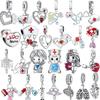 Nurse Chill Pill Stethoscope Heart Dangle Charm Beads Silver Bracelet Necklace For Diy Jewelry Women Gift