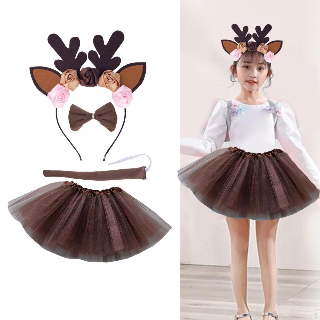 - 【Cosplay Set】: Includes reindeer headband, bowtie, tutu, and tail. Fashionable and unique, perfect for Halloween role playing. Size: Headband 21cmx23cm/8.27inchx9.06inch; Bowtie 12cmx5cm/4.72inchx1.97inch; Tail Length 32cm/12.60inch; Tutu Length 32cm/12.60inch.