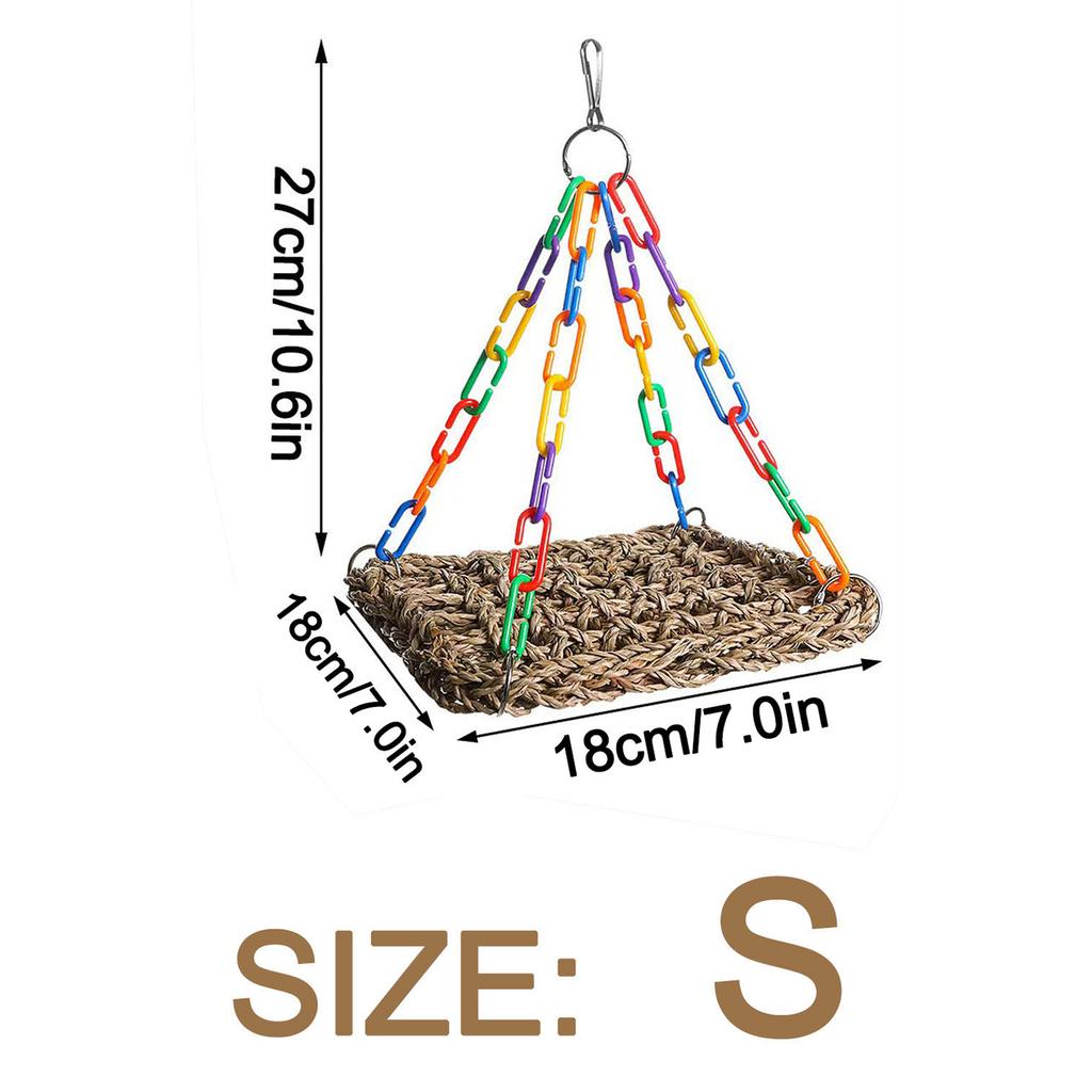 Woven Bird Hammock Woven Grass Bird Hammock Toy Adjustable Chain Ring Comfortable Rocking Toy Bird Accessories For Parrot & Bird