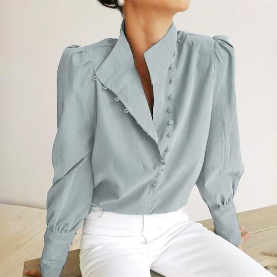 Women's shirt is crafted from breathable, skin-friendly polyester fiber, ensuring lightweight comfort and a pleasant wearing experience. Featuring a stand-up collar, it enhances an elegant and capable look while flattering the face shape, making it ideal for formal settings like commuting and the workplace.