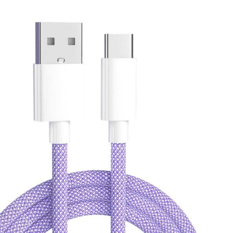 High Efficiency 2m Type C Charging Cable Power Adapter Line Wire Cord for Smartphone Earbud Braided Design Easy to Use