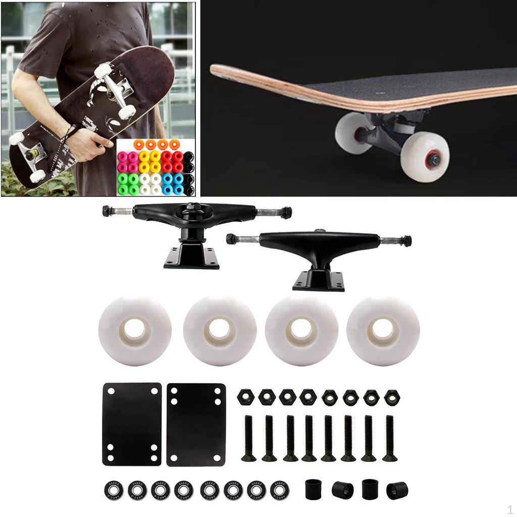 - Skateboard Parts Set: It includes skateboard trucks 5.0, skateboard wheels, skateboard bearings Abec 9, skateboard screws 1 inch, skateboard riser pads 2mm, skateboard spacer.