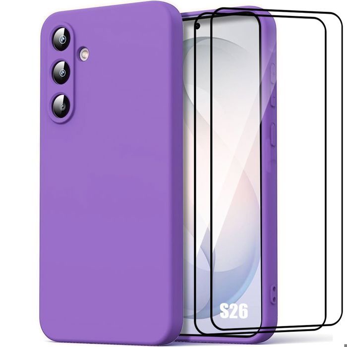 Coque Silicone - BOOLING - pour Samsung Galaxy S26 - Anti-Rayures Antichoc Violet - 2 Verres Trempés