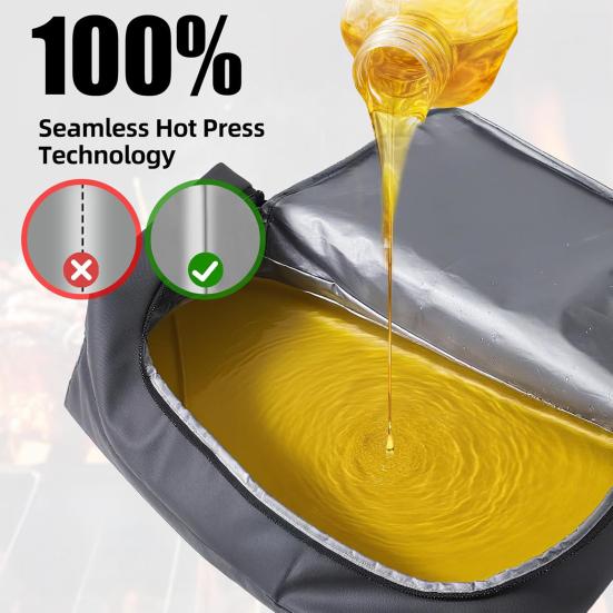 Dikişsiz Sıcak Pres Teknolojisi: Geleneksel dikiş yerine yenilikçi Dikişsiz Sıcak Pres Teknolojisi ile tasarlanan bu et dinlendirme çantası, yağlı dağınıklıkları ortadan kaldırır.. Dahili kapalı fermuarlar, yağ sızıntısını daha da önleyerek temiz bir pişirme ortamı sağlar.. Bu özellik yüzeylerinizi lekelere karşı korur ve yemek pişirme sonrası temizliği basitleştirir, bu da onu sorunsuz barbekü seansları için ideal kılar.