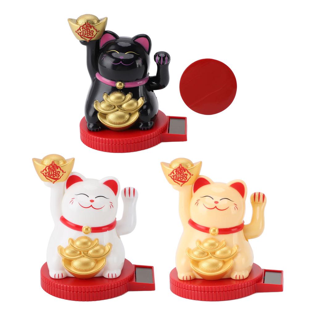 Solar Powered Lucky Cat Solar Powered Lucky Cat Rotating Base Fortune Cat Statue for Car Dashboard Checkstand Desktop Decoration