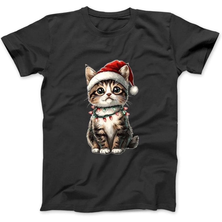 Cute Kawaii American Shorthair Cat Christmas Hat Xmas Long Sleeve, T-Shirt, Sweatshirt, Hoodie for Men, Women, Kids