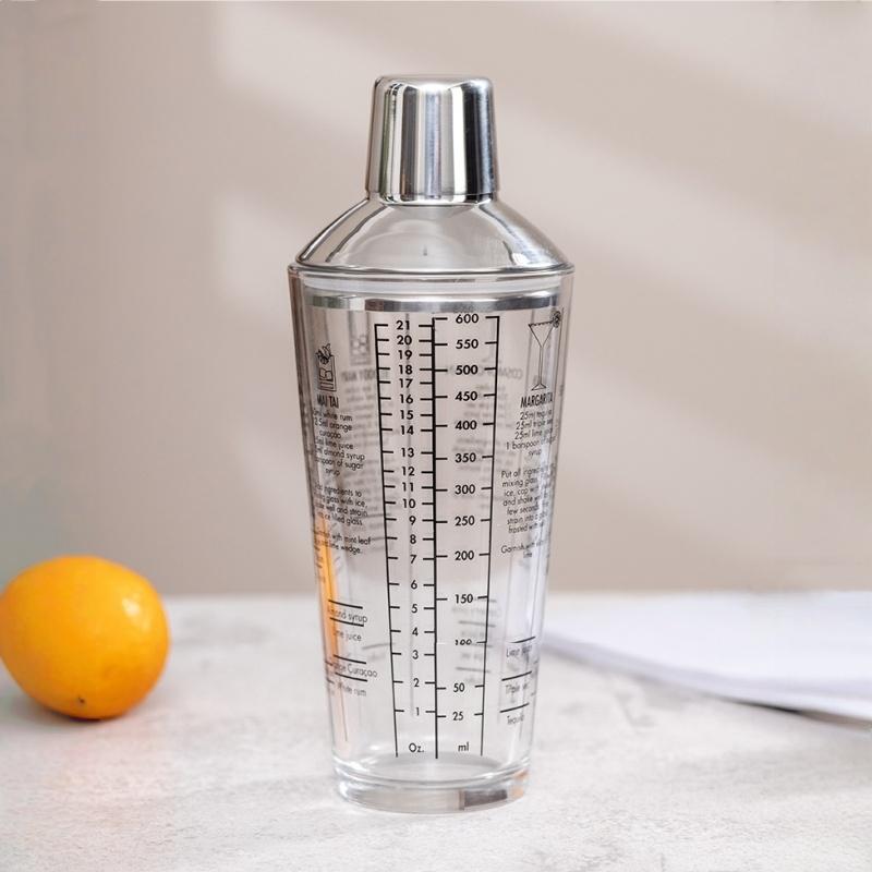 Glass Cocktail Shaker Martini Hand Shaker Cup with Scales 400/600ml Milk Tea Lemon Tea Wine Drink Shaker Mixer Bar Tool