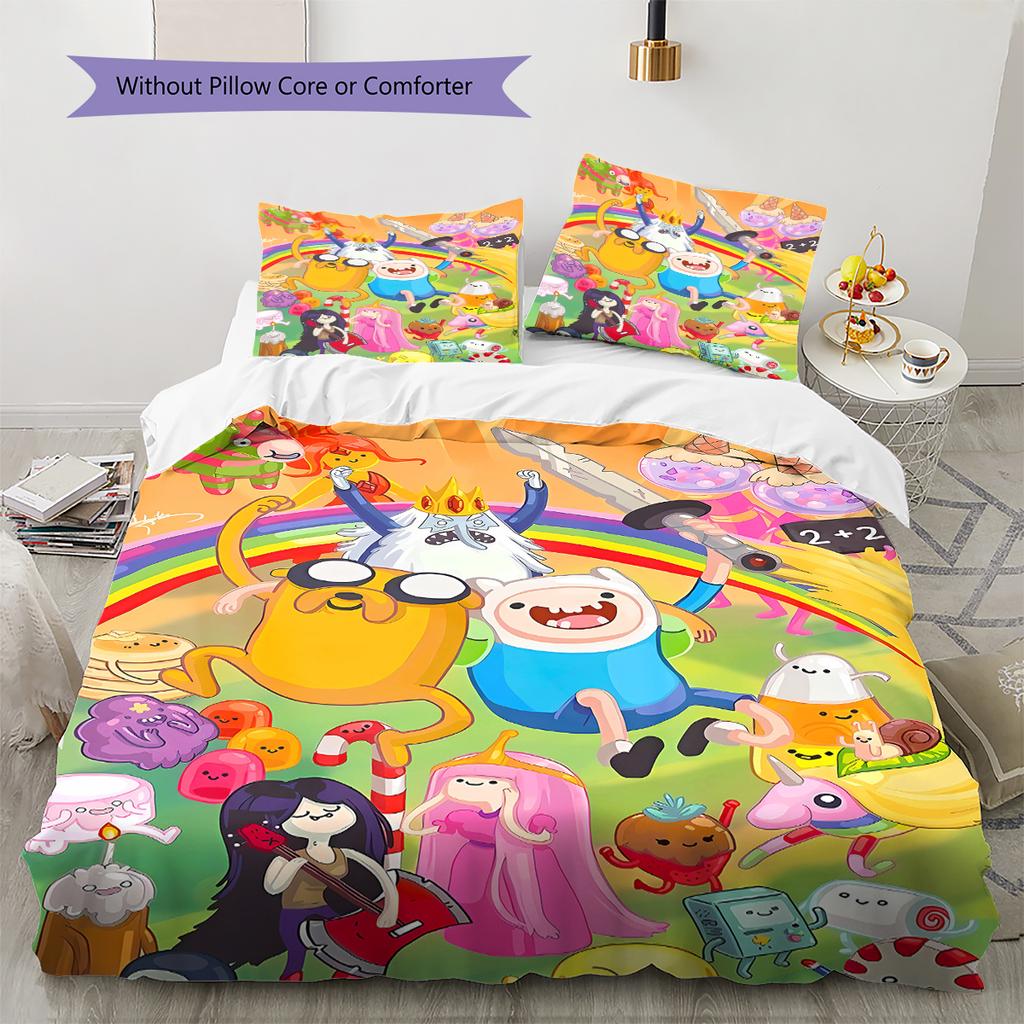 Adventure Time Pattern Bedding,Quilt Set Quilt Cover Pillowcase Home Decoration Birthday Gift (1 * duvet cover + 2 * pillowcase, without core)