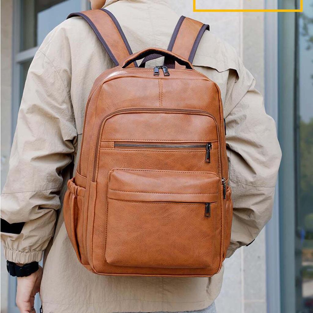 - 【High Quality】This fashion men's backpack is made of pu leather material, waterproof, wear resistant, durable, lightweight and long using time.