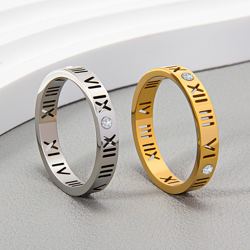 European and American Furnace Roman Numeral Ring Hollow Couple Men's and Women's Alphabet Ring