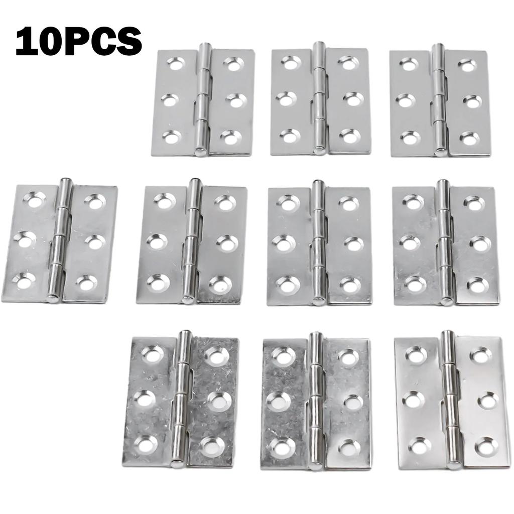 10pcs Door-Hinge Stainless Steel Flat Hinges Door Connector Drawer 6 Mounting Holes For Various Wooden Doors Entrance Doors