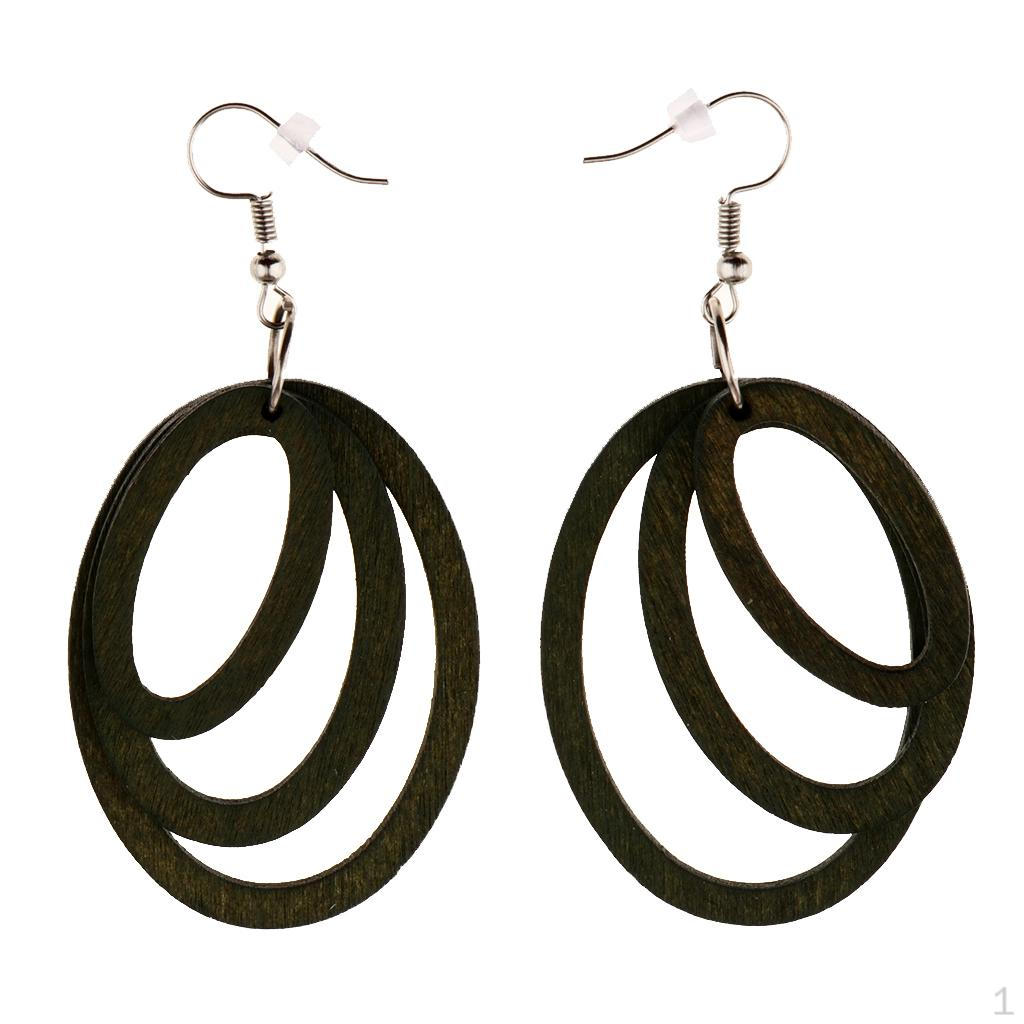 Wood Dangle Earrings, Geometric Ear Studs Wooden Eardrop Earrings for Women Girls Statement