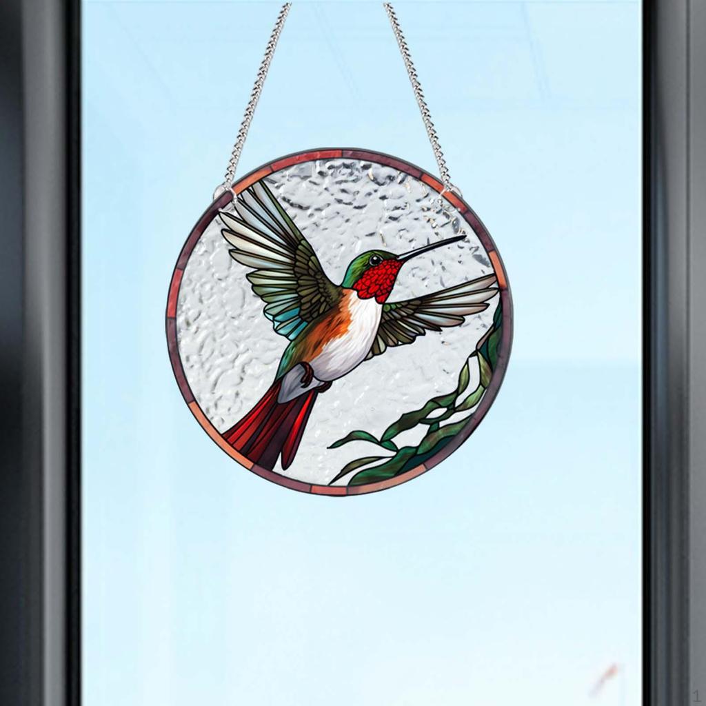 - 【Durable Material】Stained Glass Window Hanging Decor is made of acrylic material, which is colorful, beautiful and durable. And equipped with a 60cm iron chain and suction cup hook for easy hanging.