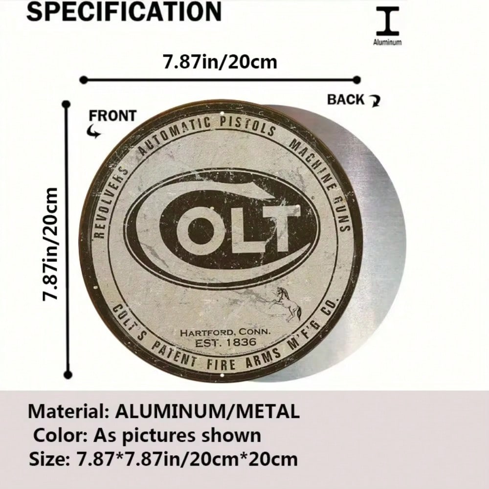 Colt Revolver Round Metal Tin Sign Vintage Wall Decor for Cafe Bar Home