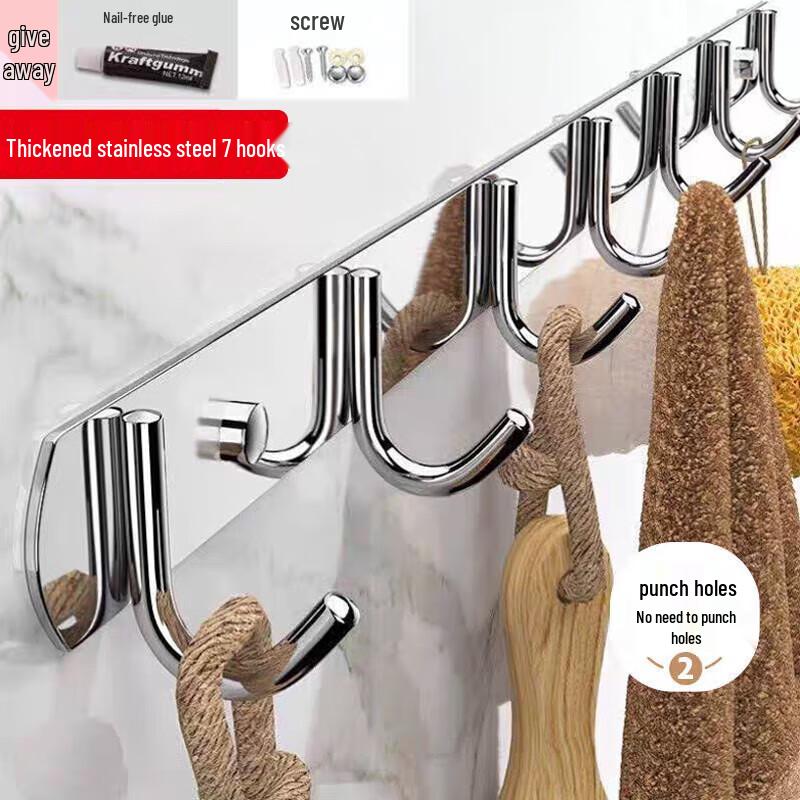 Mengting 304 Stainless Steel 7-Hook Adhesive Wall Hanger