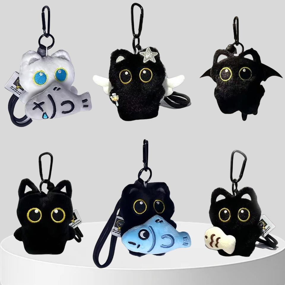 1/2/3Pcs Cool Plush Black Cat Doll Toy Keychain Bag Pendant Charms Car Keyring Accessories For Women Men Friends Gifts