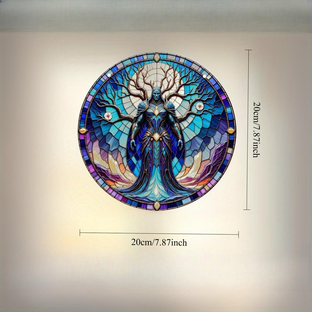 Vintage Acrylic Heavenly Guardian, Suncatcher, 2D Round Acrylic Hanging, Stained Glass Style Window Decor for Farmhouse Garden and Yard