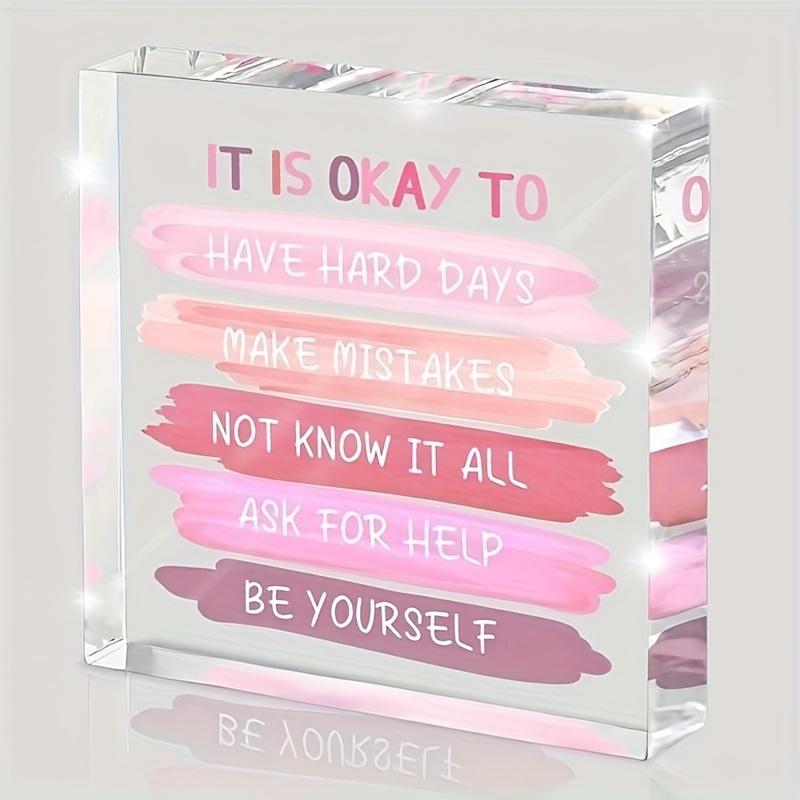 Pink 2D Flat Acrylic Motivational Desk Decor - Inspirative Office Gift for Women with Positive Affirmations "It is Okay to Have Hard Days"