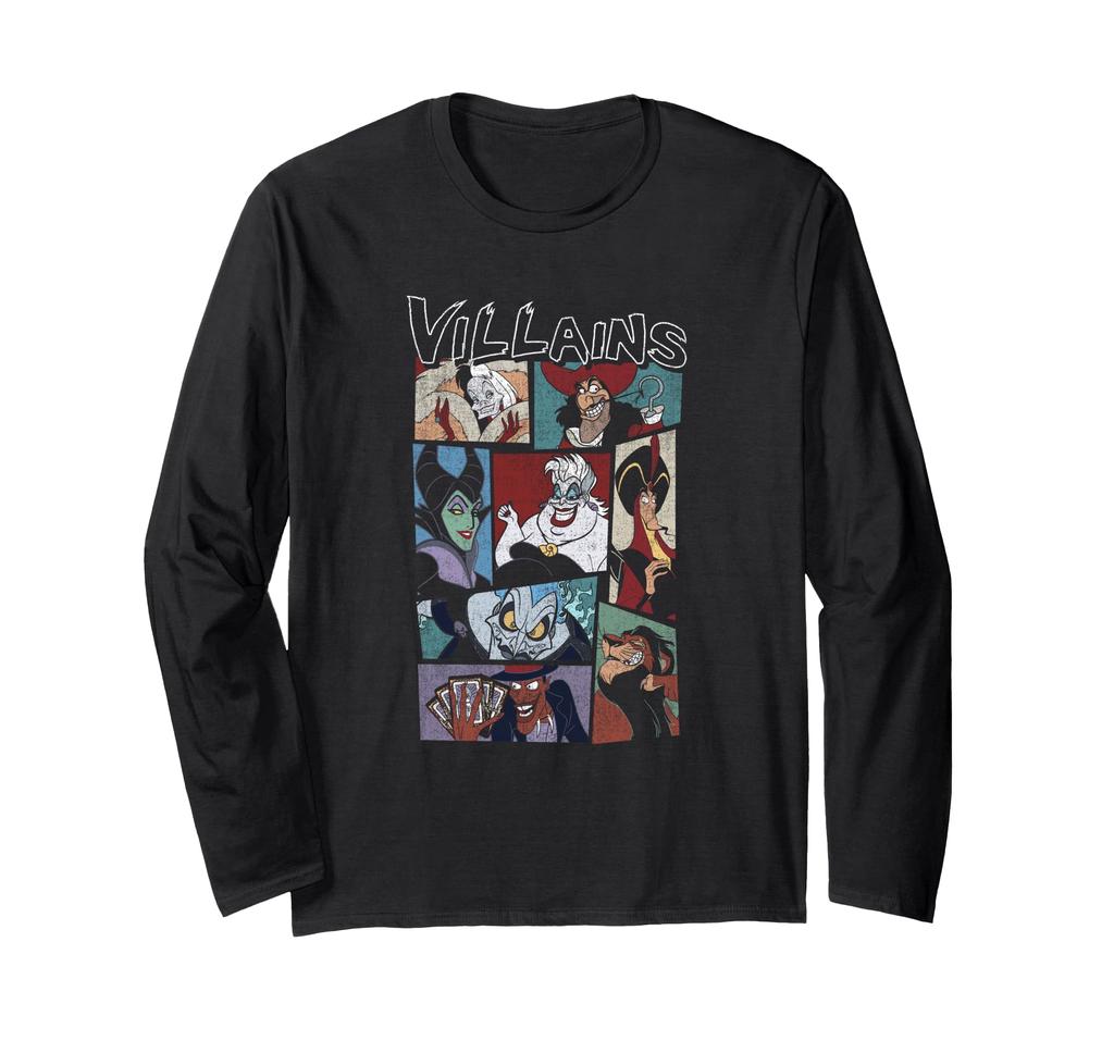 Disney Villains Epic Group Shot Distressed Large Chest Panel Long Sleeve T-Shirt