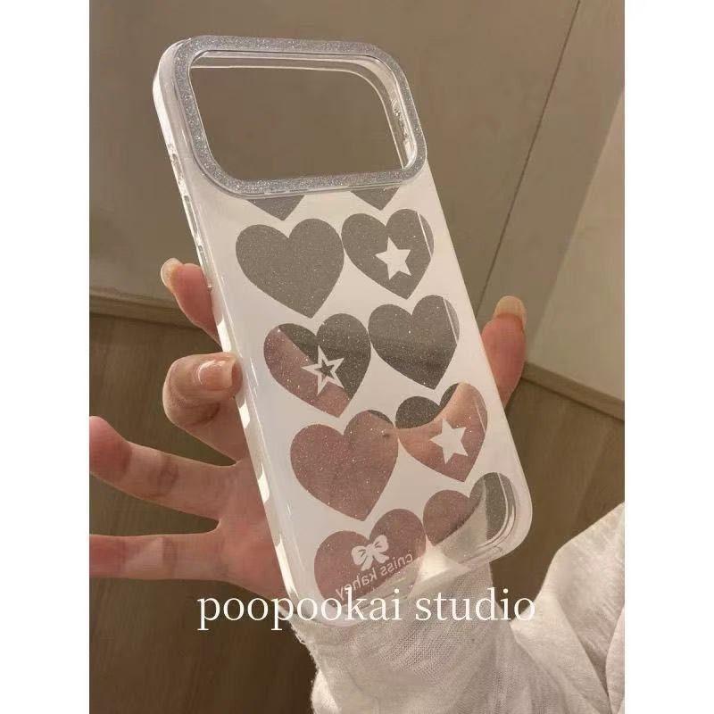 Korean INS Hollowed Out Love Heart Glitter Phone Case For iPhone17 Air 16 15 14 13 12 11Pro Max 78Plus XSMax Anti Fall Y2k Cover