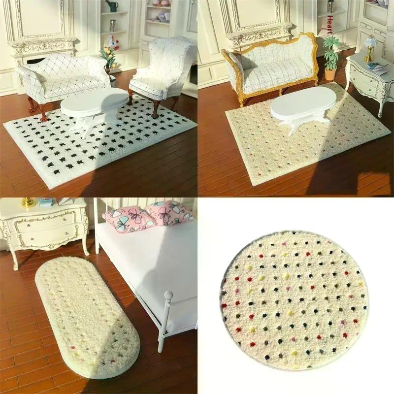Miniature Plush Carpet Fluffy Mat Model 1: 12 Dollhouse Photography Prop Kids Pretend Play Toys Doll House Mini Decoration Gifts