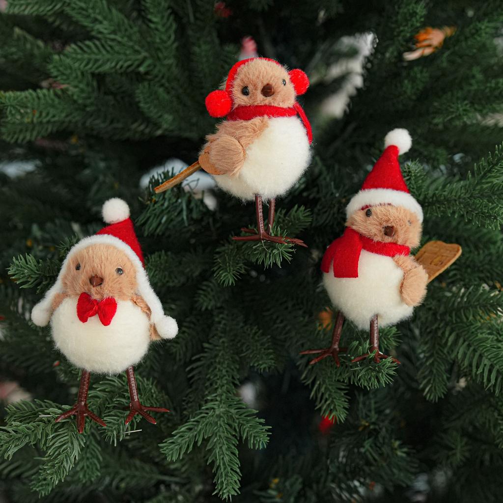 Christmas Simulation Bird Hanging Pendant Foam Red Scarf Hats Bird Xmas Tree Ornaments Merry Christmas Decor Happy New Year