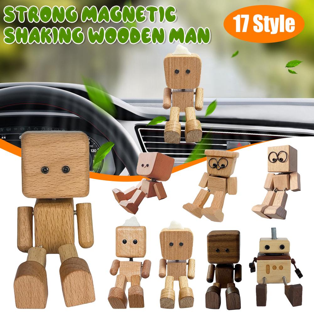 Wooden Man Figurine Shaking Wooden Man Figure Decoration Desktop Dashboard Funny Sculpture Ornament for Family Outings Road Trip