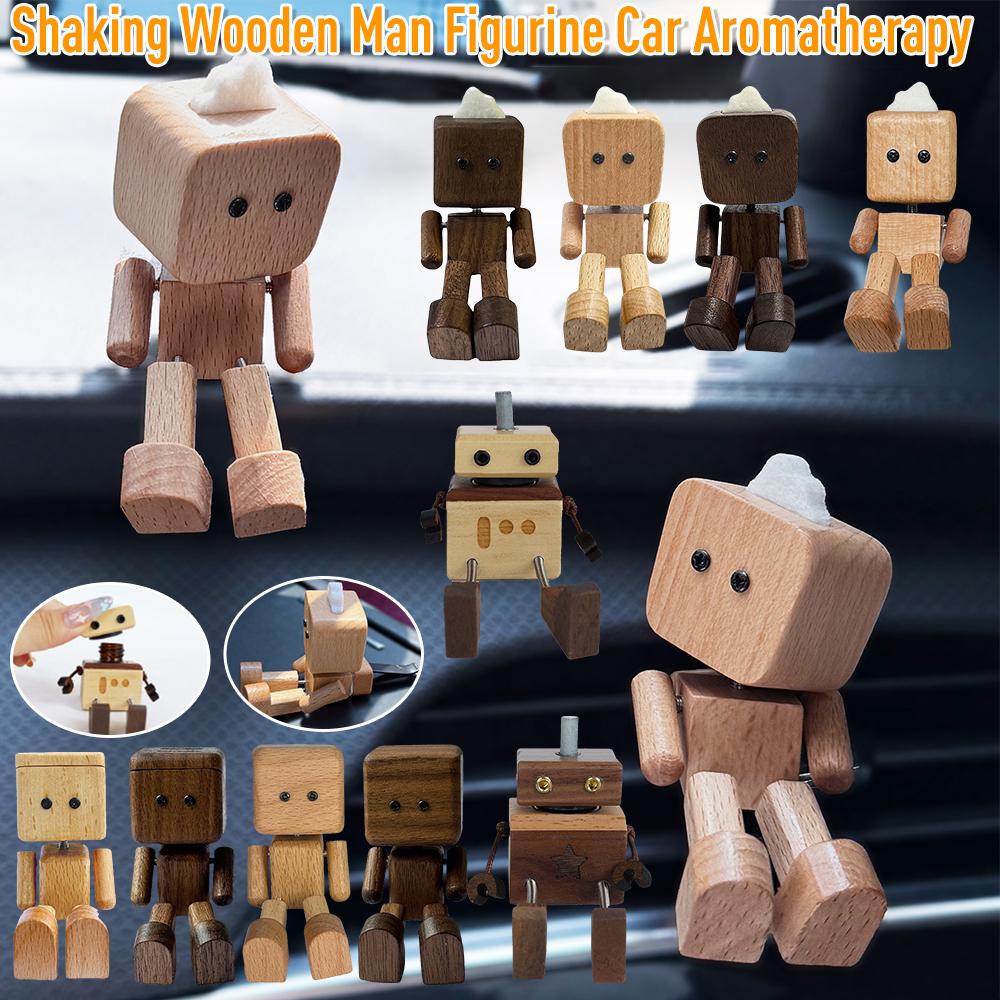 Shaking Wooden Man Figurine Leg-swinging Robot Figurine Cute Wood Man Small Ornaments Car Aromatherapy Wooden Figure Shaking Man