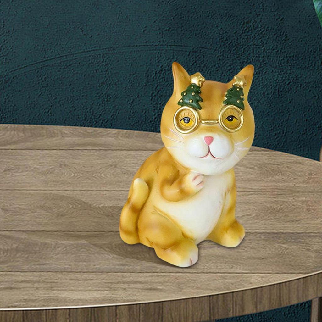 - 【Cute Cat Statue】: A cat ornament wearing glasses, with fine workmanship and elegant posture, adding beauty to any environment.