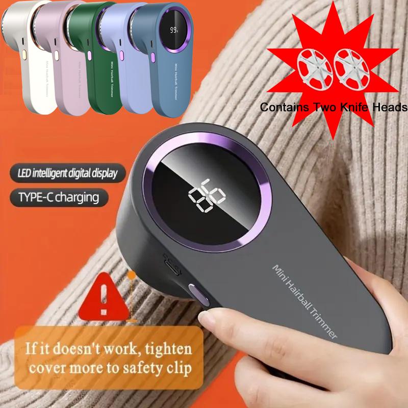 Portable USB Rechargeable Electric Lint Shaver and Fabric Trimmer with Digital Display, Includes Two Blades – Ideal for Clothes