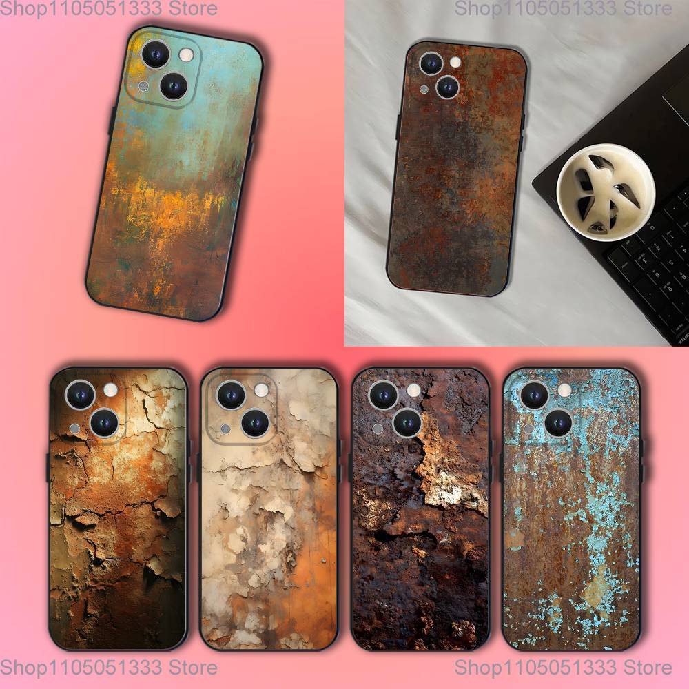 Retro Industrial Style Rusty Phone Case For iPhone 17,16,15,14,13,12,11,Pro,XS,Max,XR,Plus,E,SE4,Mini Black Soft Cover