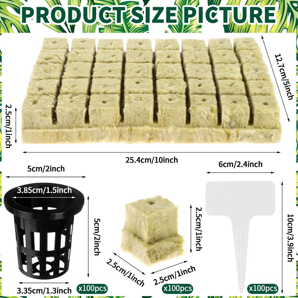 100 Set With Net Pots, Including 100 Packs 2 Inches Plastic Net Pots, 100 Packs Rock Wool Planting And