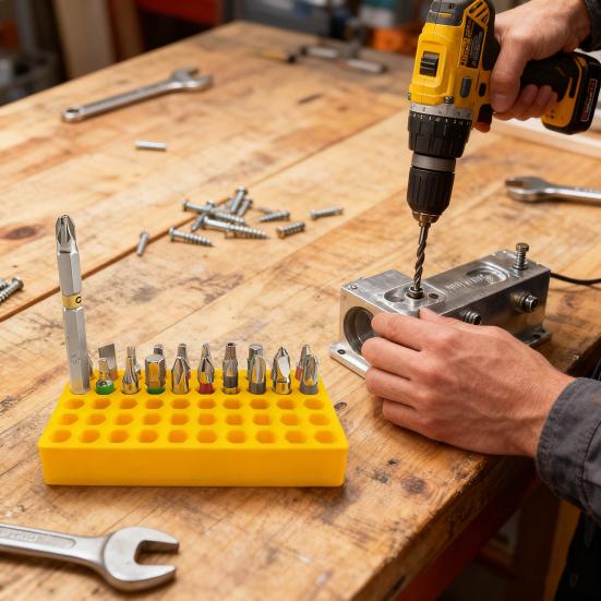 Compact and Portable Design: Measuring just the right size to fit into tight spaces, this bit holder is perfect for on-the-go professionals. Its durable build makes it suitable for construction sites or mobile projects where space and portability are essential.
