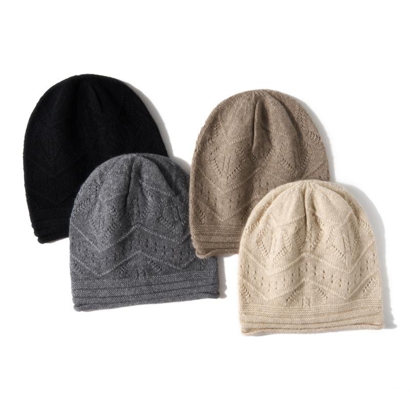 Cashmere Autumn and Winter New Style Women's High End Solid Color Warm Fashion Knitted Casual Curled Lotus Top Hat