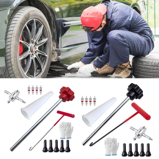 The T-shaped hook easily extracts damaged valve cores, while the tapered tube ensures precise alignment during installation. The durable metal push rod accurately inserts new valve cores into rim holes. Made with steel and industrial-grade nylon handles, this kit enables valve changes in just 15 seconds.