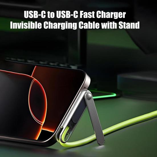 This dual-headed data cable offers universal compatibility with USB-A to USB-C and USB-C to USB-C connectors, making it perfect for smartphones, laptops, tablets, and other USB-C devices. Featuring a built-in foldable T-shaped hands-free stand, it allows convenient video watching, calls, or browsing while charging. Delivering ultra-fast 240W charging and 480Mbps high-speed data transfer, this cable ensures rapid power delivery and efficient file syncing.