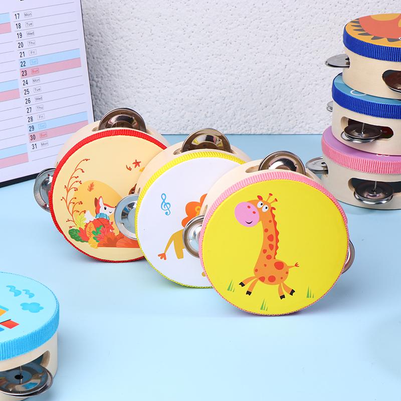 10CM Wooden Tambourine for Kids - Manual Percussion Hand Drum Educational Musical Instrument Game for Children